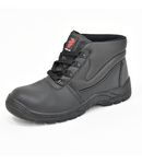 Leather upper. Steel toe cap (200 Joules). PU sole. Oil resistant sole. Steel midsole. Anti-static. Energy absorbent heels. D-ring fastening. Branded tab.