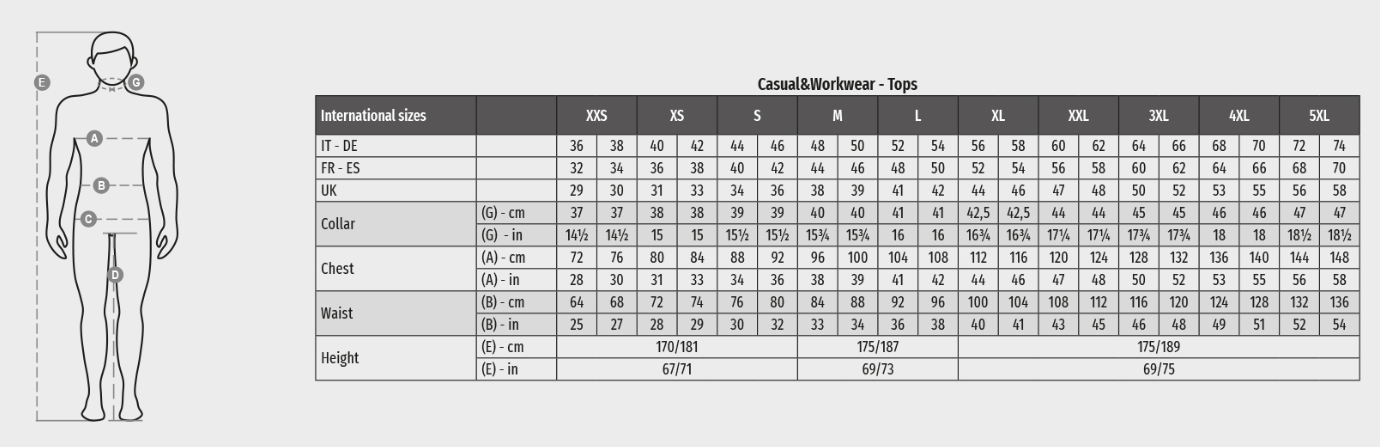 Open-collar jacket, elastic cuffs, concealed button closure, two patch pockets and a chest pocket with smartphone holder, badge holder, pen holder and closure flap with Velcro.